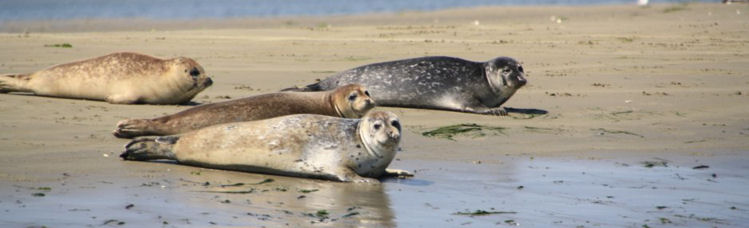 Niets is leuker dan zelf zeehonden te zien. Dat kan in de Oosterschelde heel goed bij laag water. Dan liggen ze te zonnen en rusten op de zandbanken, vlakbij een geul. Klik hier voor website.